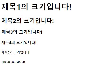 <h1>제목1의 크기입니다!</h1>